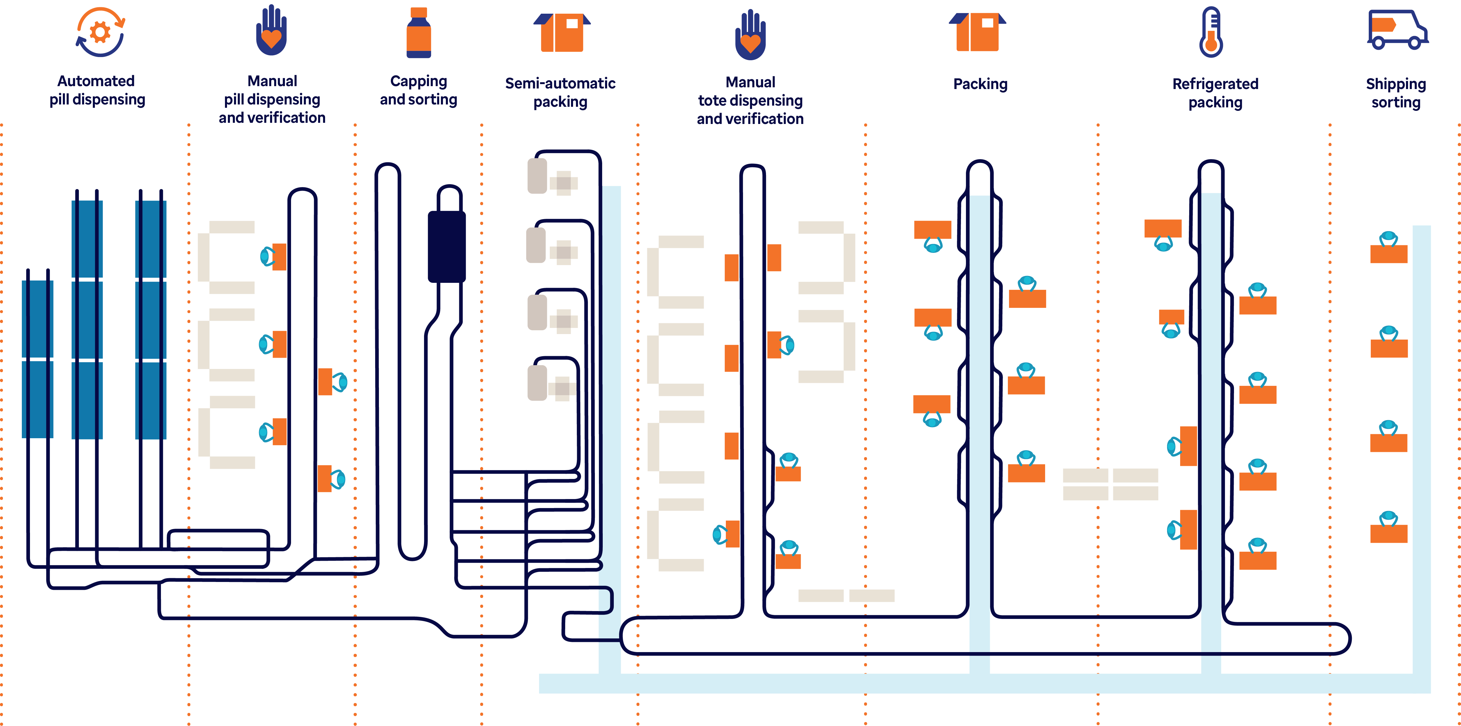 Simplified IT/OT Architecture with Integration, Order management, Order Routing, Product traceability, Pick, Verification, Packing, Shipping